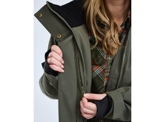 De jas is voorzien van vele handige zakken, ideaal voor het opbergen van hondentrainingsspullen. Aan de voorkant zitten handzakken met plooien en magnetische flappen, fleecegevoerde handwarmerzakken, een binnenzak met rits en een opening voor hondenpoepzakjes en een veiligheidszak met rits. Er is ook een grote wildzak met rits en reflectoren voor lijnen en dummy's, en uitvouwbare reflectoren aan de binnenkant. De jas is gevoerd met een stijlvolle gewatteerde stof en de binnenkant van de kraag is fleecegevoerd voor extra comfort. De jas heeft een tweewegrits met magnetische sluiting ter bescherming tegen wind en regen.